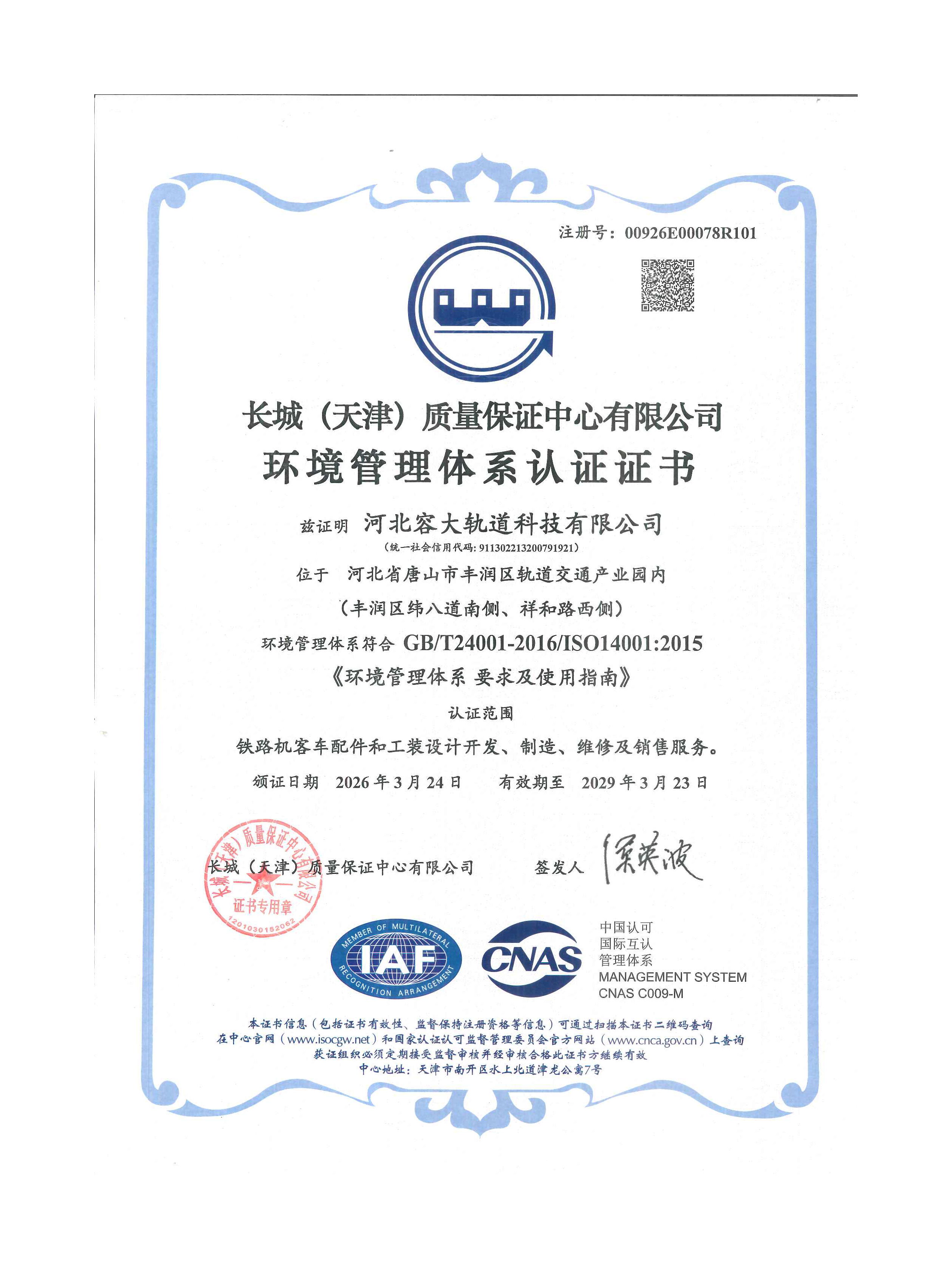 环境管理体系认证证书