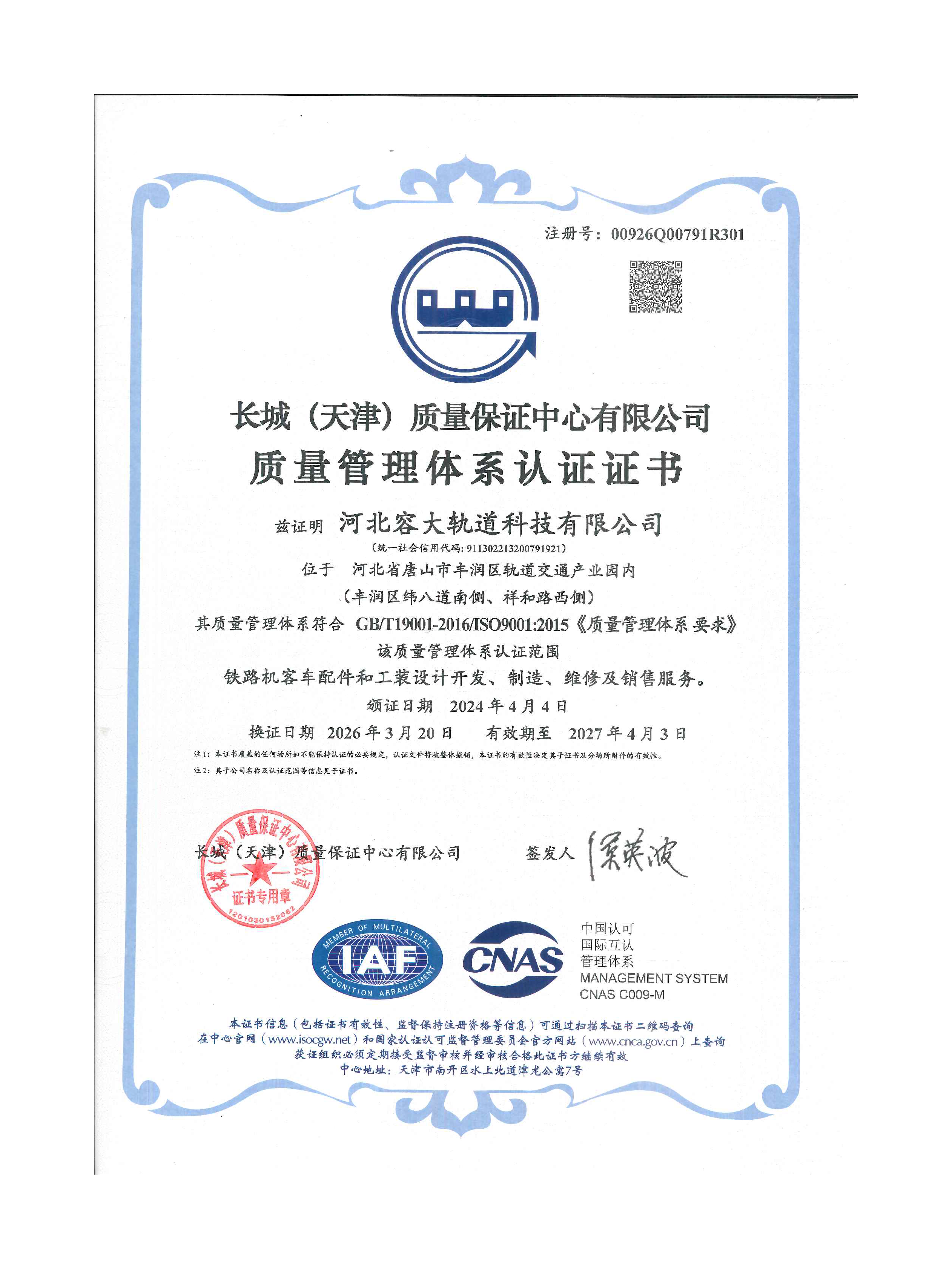 质量管理体系认证证书