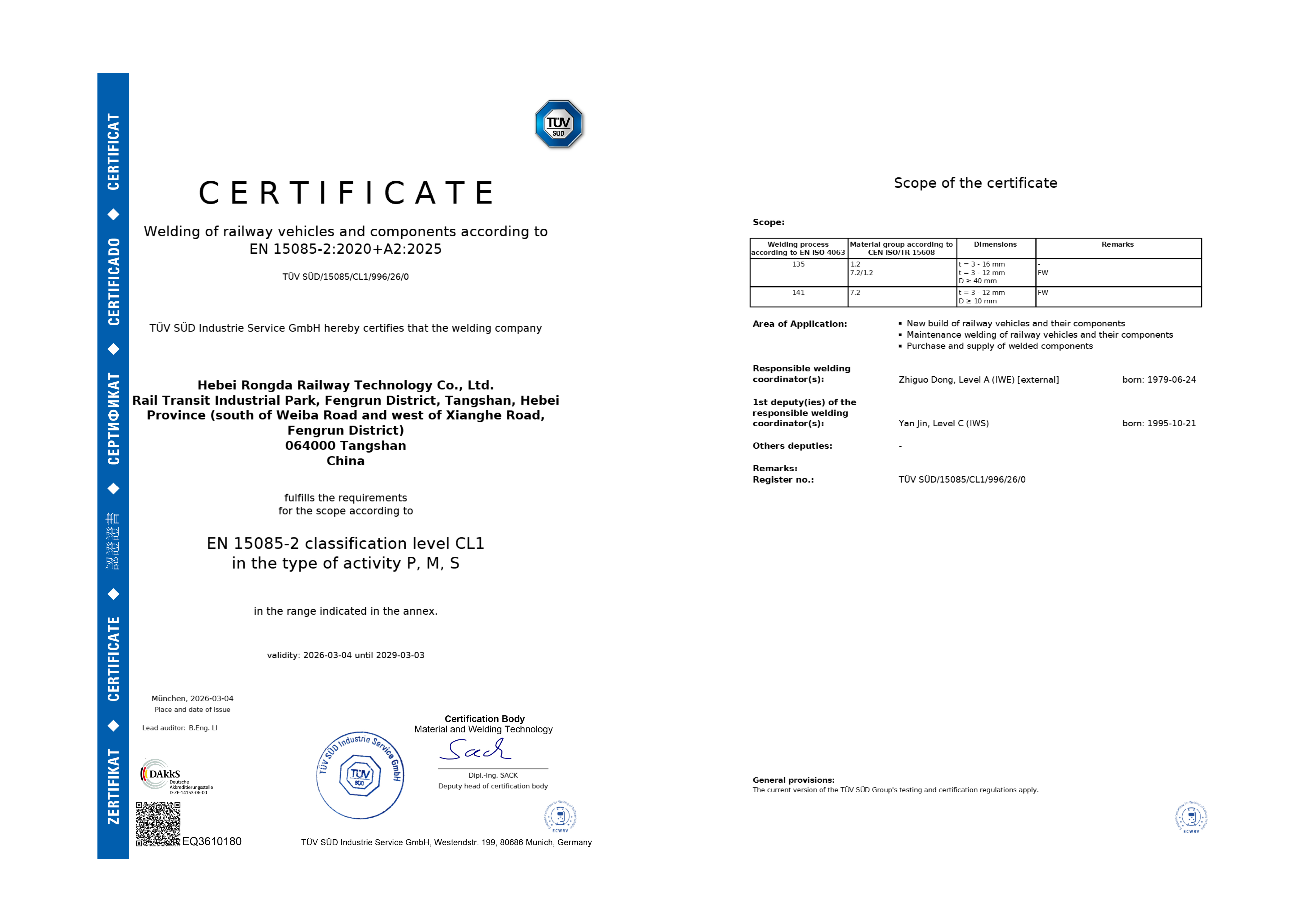 EN15085认证证书